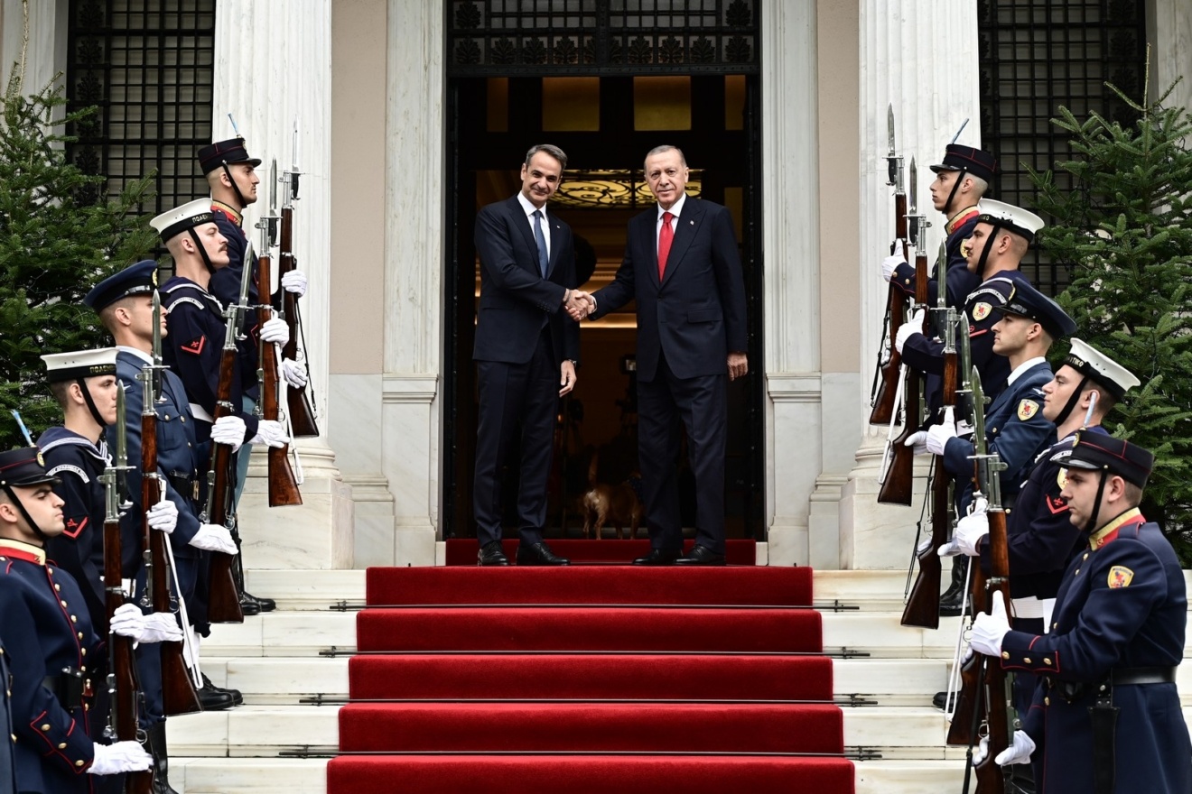 Η επίσκεψη του Πρόεδρου Τουρκίας Ρετζέπ Ταγίπ Ερντογάν στην Αθήνα μετά από εξι χρόνια φέρνει τα φώτα τη δημοσιότητας στην χώρα μας. Ο Τούρκος Πρόεδρος Ταγίπ Ερντογάν έφτασε στις 10:30 στο αεροδρόμιο Ελευθέριος Βενιζέλος, όπου τον υποδέχτηκε ο υπουργός Εξωτερικών Γιώργος Γεραπετρίτης. Στη συνέχεια επισκέφτηκε την Πρόεδρο της Δημοκρατίας Κατερίνα Σακελλαροπούλου και τον Πρωθυπουργό.