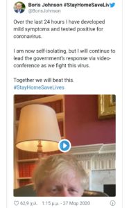 Θετικός στον κορωνοϊό διαγνώστηκε ο Βρετανός πρωθυπουργός Μπόρις Τζόνσον.
