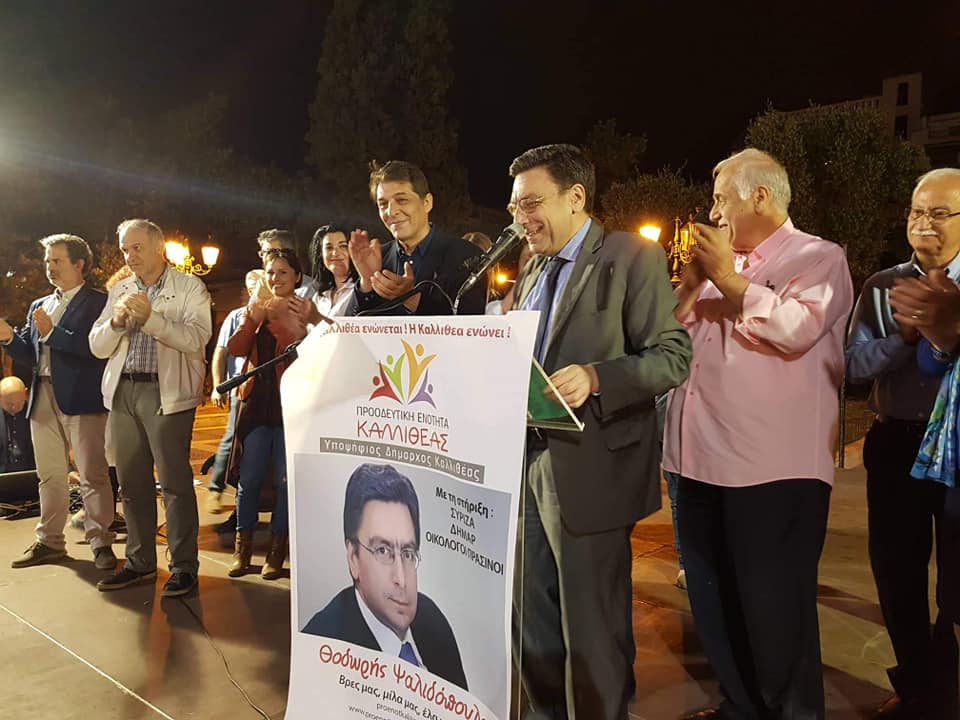 Εκ μέρους της «Προοδευτικής Ενότητας Καλλιθέας» σας ευχαριστώ για τη συμμετοχή σας στην κεντρική προεκλογική εκδήλωση του συνδυασμού.