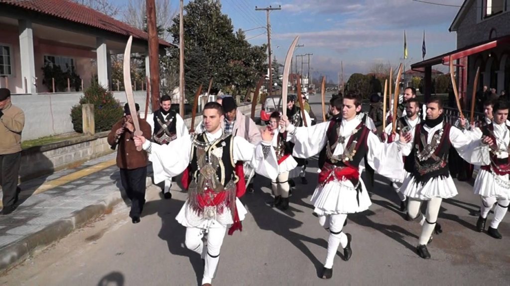 Στη Θεσσαλία αναβιώνουν τα ρουγκάτσια. Ομάδες δεκαπέντε ατόμων μεταμφιεσμένων σε γαμπρό, νύφη, παπά κλπ γυρνούν από σπίτι σε σπίτι ζητώντας κέρασμα.
