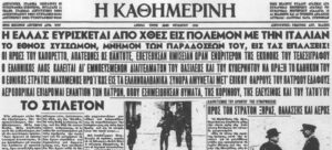 Αναλυτικότερα, ο Μουσολίνι, υιοθετώντας την πολιτική του Χίτλερ και έχοντας κατακτήσει την Αλβανία από το 1939, ζητά από τον Μεταξά την ελεύθερη διέλευση του Ιταλικού στρατού από τη χώρα μας. Η άρνηση του δικτάτορα, βάζει αυτόματα την Ελλάδα στον πόλεμο με απανωτές συγκρούσεις στα ελληνοαλβανικά σύνορα. Ο Ελληνικός στρατός μάχεται με σθένος και συνεχώς κερδίζει εδάφη της Αλβανίας, όπως τη Κορυτσά, το Πόγραδετς, τους Άγιους Σαράντα κα.