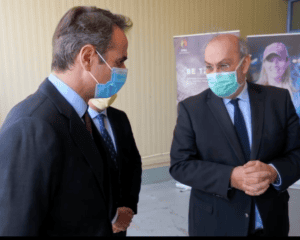 Τον Πρωθυπουργό συνόδευσαν ο Υπουργός Υγείας Βασίλης Κικίλιας, ο Υφυπουργός Βασίλης Κοντοζαμάνης, ο εκπρόσωπος του Υπουργείου για τον νέο κορονοϊό καθηγητής Σωτήρης Τσιόδρας, ο Πρόεδρος του ΕΚΕΑ Παναγιώτης Κατσίβελας και ο Επιστημονικός Διευθυντής του Κέντρου, Κώστας Σταμούλης.