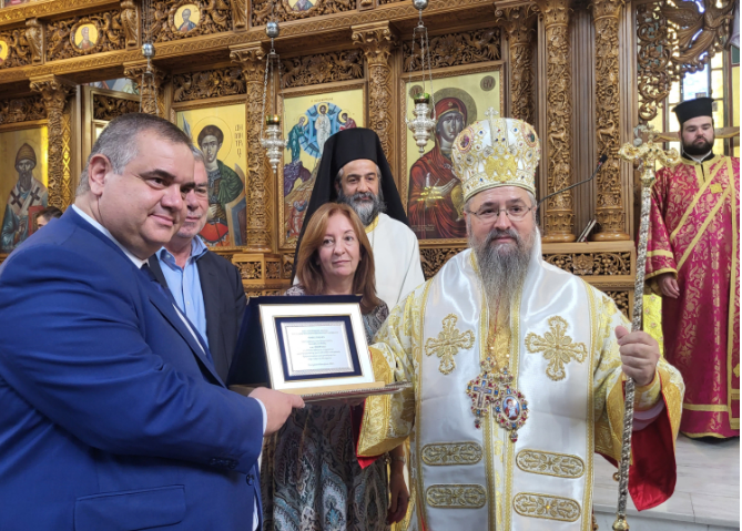 Σήμερα ζήσαμε εξαιρετικά συγκινητικές στιγμές με αποκορύφωμα την τιμητική διάκριση του Σεβασμιότατου Μητροπολίτη μας κ. Θεοφίλου για την προσφορά του στην εκκλησία και ιδιαίτερα στο Μοσχάτο αλλά και της μητέρας του Κατερίνας αφού η ταπεινή και μοναδική αυτή γυναίκα μεγάλωσε και παρέδωσε στην εκκλησία ένα τόσο σημαντικό άνθρωπο, όπως ανέφερε ο προϊστάμενος του Ναού της Μεταμορφώσεως του Σωτήρος, π. Ιάκωβος.