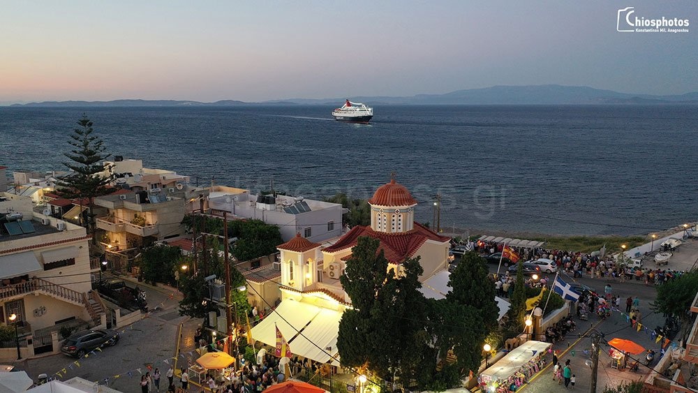 Με εντυπωσιακό τρόπο τίμησε και φέτος κατά τον Εσπερινό 25-07-2021 ο cpt Γιώργος Αρβανίτης τη γενέτειρα του Αγία Παρασκευή Καστέλο στη Χίο. Το πλοίο