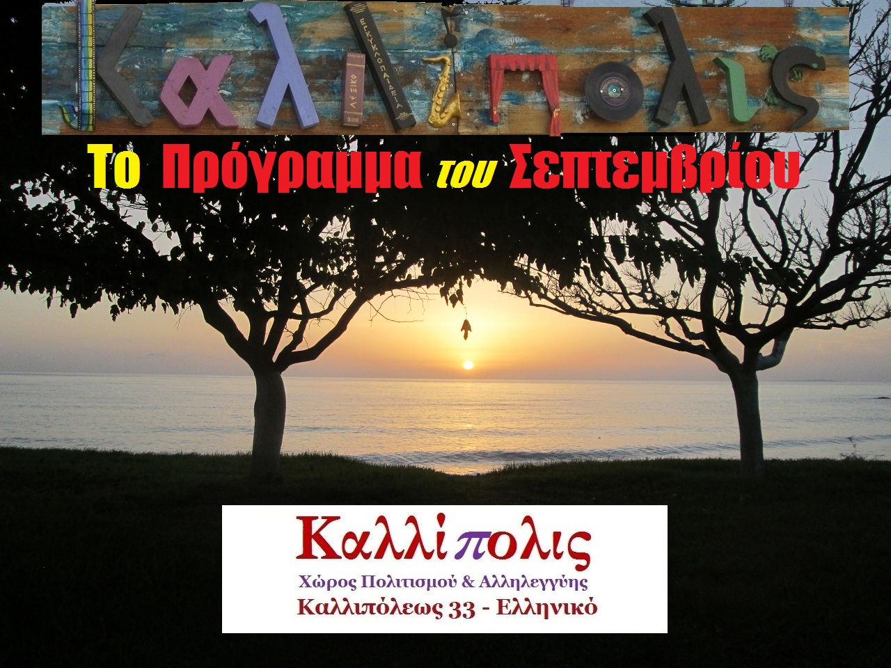 Ολοκληρώθηκε το πρόγραμμα του Σεπτεμβρίου που συμπληρώνει τις υπαίθριες προβολές, μετά από σύσκεψη των μελών & φίλων του Χώρου Πολιτισμού & Αλληλεγγύης «Καλλίπολις» που πραγματοποιήθηκε την Πέμπτη 5/9.
