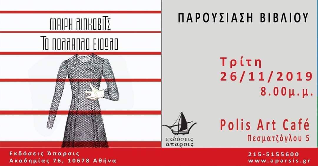 Οι εκδόσεις Άπαρσις και η συγγραφέας Μαίρη Λίπκοβιτς σας προσκαλούν στην παρουσίαση του βιβλίου της «Το πολλαπλό είδωλο», την Τρίτη 26/11/2019, 20.00 στο Polis Art Café, Πεσματζόγλου 5