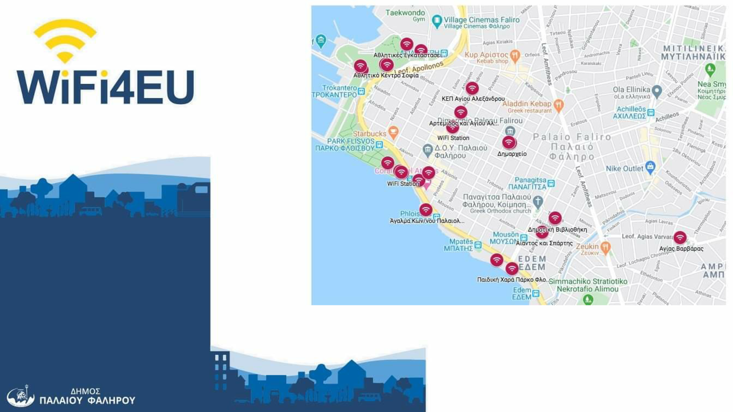 Τη δυνατότητα να απολαμβάνουν δωρεάν και ελεύθερη πρόσβαση στο διαδίκτυο μέσω του ασύρματου δικτύου WiFi4EU έχουν πλέον οι κάτοικοι και οι επισκέπτες του Δήμου Παλαιού Φαλήρου, στο πλαίσιο των πολιτικών που υλοποιεί η Δημοτική Αρχή για τον ψηφιακό μετασχηματισμό του Δήμου.