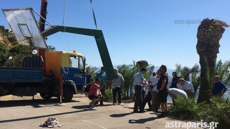 Απομακρύνθηκαν από τις θέσεις τους οι δύο μπασκέτες στο γηπεδάκι της Δασκαλόπετρας, στον Βροντάδο της Χίου, το πρωί της Τετάρτης (7 Αυγούστου) στο πλαίσιο της διενέργειας της πραγματογνωμοσύνης, προκειμένου να «φωτιστούν» τα αίτια που οδήγησαν στον άδικο θάνατο του 19χρονου φοιτητή.