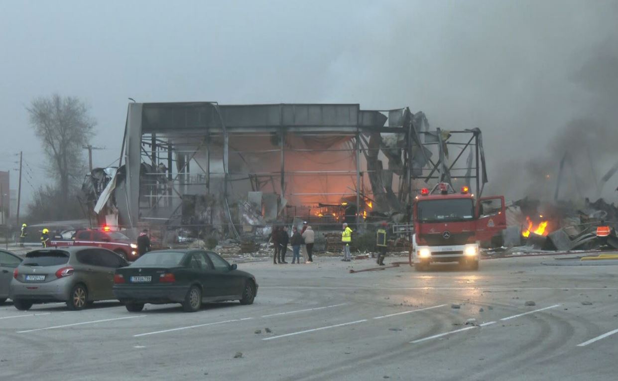 Όπως μετέδωσε η ΕΡΤ, δύο τμήματα του εργοστασίου συνεχίζουν να καίγονται από τις 4 τα ξημερώματα, με το ωστικό κύμα της έκρηξης να προκαλεί εκτεταμένες καταστροφές, καθώς κατέρρευσε τοίχος και στη συνέχεια η οροφή του κτιρίου.