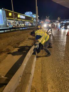 Συγχρόνως εκτελείται συστηματικός καθαρισμός τουλάχιστον μία φορά το μήνα στο σύνολο των φρεατίων της παραλιακής λεωφόρου για την αποτελεσματικότερη απορρόφηση των ομβρίων υδάτων. Ειδικότερα γίνεται αντικατάσταση των φθαρμένων ή τρακαρισμένων στηθαίων ασφάλειας όποτε απαιτείται και διατηρείται ευδιάκριτη η οριζόντια και η κάθετη σήμανση με επαναδιαγραμμίσεις και αντικαταστάσεις φθαρμένων πινακίδων σε όλο το μήκος του δρόμου.