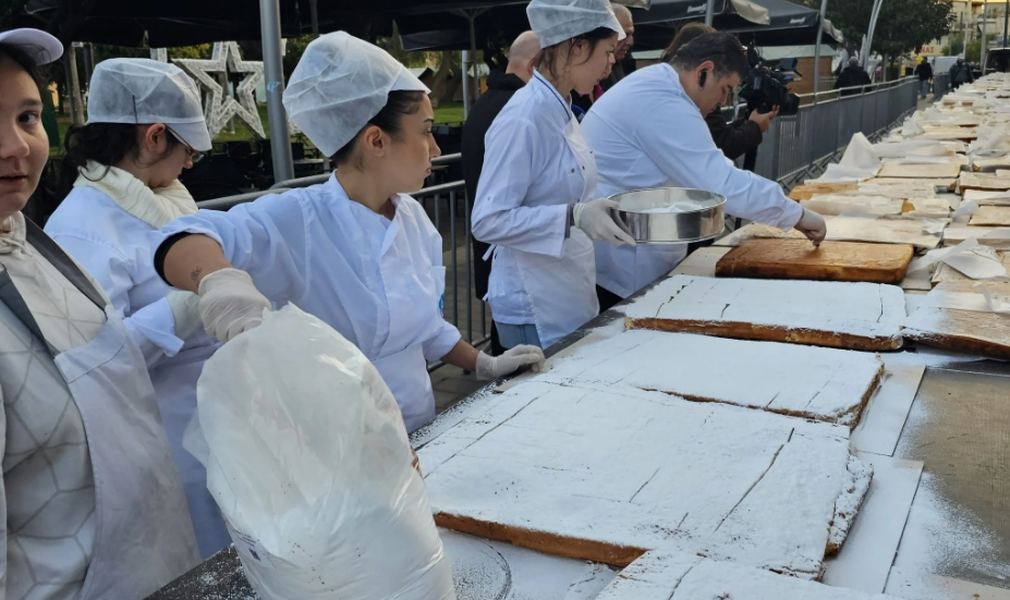 Βασιλόπιτα για ρεκόρ Γκίνες εμφανίστηκε στην πλατεία Δημαρχείου στο Περιστέρι, η οποία ζυγίζει πάνω από 10 τόνους και μετρά πάνω από 70.000 κομμάτια.