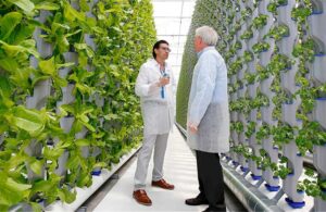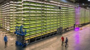τεράστιους πόρους και την έκταση γης που απαιτούνται για την παραδοσιακή γεωργία σε μια ενιαία κατακόρυφη δομή, με τις καλλιέργειες να στοιβάζονται το ένα πάνω στο άλλο όπως τα πατώματα ενός κτιρίου. Η Σιγκαπούρη άνοιξε την πρώτη εμπορική κάθετη φάρμα στον κόσμο το 2012. Το ίδιο έγινε και στο Αμπου Ντάμπι.