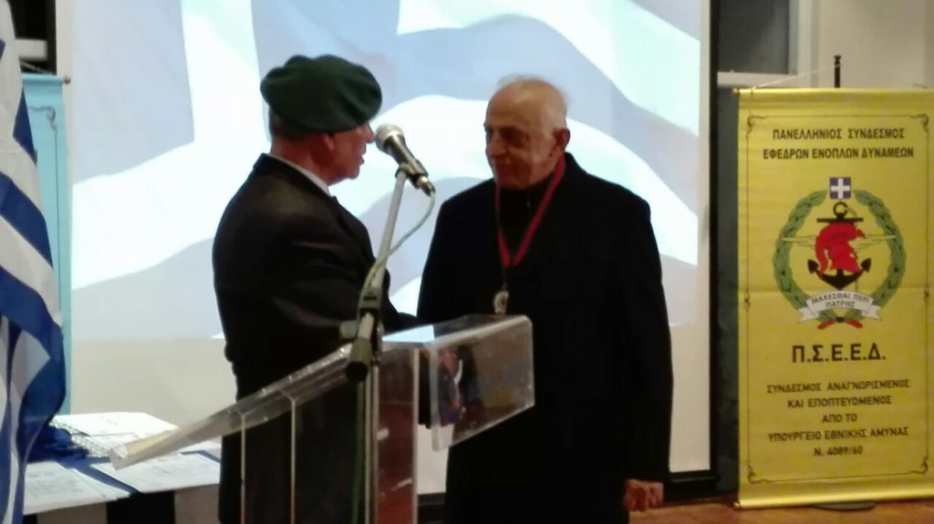 Σε εκδήλωση που διοργάνωσε στο Πολιτιστικό Κέντρο Φλοίσβος ο Πανελλήνιος Σύνδεσμος Εφέδρων Ενόπλων Δυνάμεων – Σύνδεσμος Αθηναίων Καταδρομέων, τιμήθηκε ο Δήμαρχος Παλαιού Φαλήρου Διονύσης Χατζηδάκης για την προσφορά του και την αγαστή συνεργασία του Δήμου Παλαιού Φαλήρου με τον Σύνδεσμο.