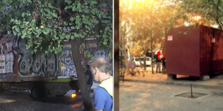Πρόκειται για το περίφημο κοντέινερ που στήθηκε από αντιεξουσιαστές πριν από περίπου τρία χρόνια και λειτουργούσε ως περίπτερο ενημέρωσης, όπως το είχαν χαρακτηρίσει παλαιότερα σε σχετική ανακοίνωση.