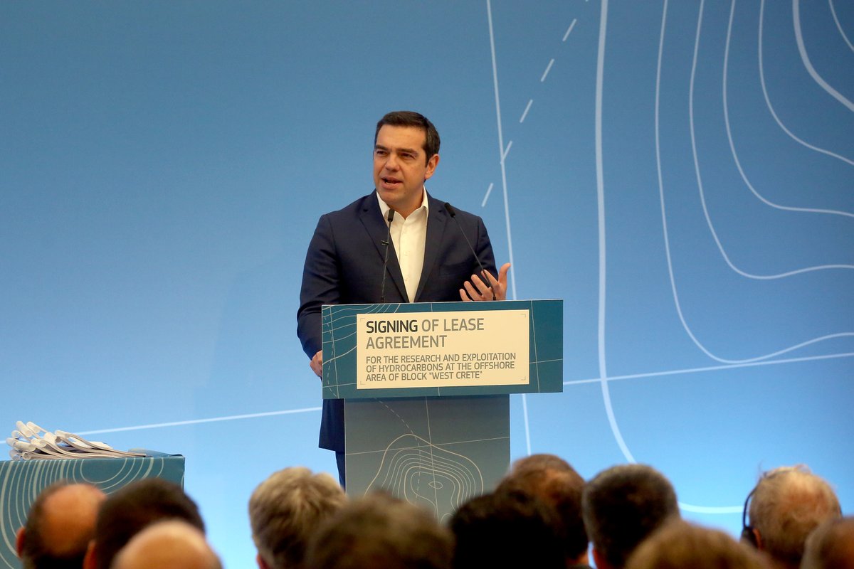 Χαιρετισμός στην τελετή υπογραφής της σύμβασης μίσθωσης του Ελληνικού Δημοσίου με την κοινοπραξία «Exxon Mobil – Total – ΕΛΠΕ» για την παραχώρηση του δικαιώματος έρευνας και εκμετάλλευσης υδρογονανθράκων στη θαλάσσια περιοχή «Δυτικά Κρήτης».https://t.co/qq93XjDzKL