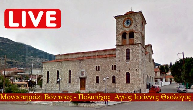 Γιορτάζει σήμερα Κυριακή 8 Μαΐου το Μοναστηράκι Βόνιτσας. Ο πολιούχος Άγιος Ιωάννης Θεολόγος. Παρακολουθείστε τη Θεία λειτουργία και περιφορά της εικόνας του Αγίου Ιωάννη.